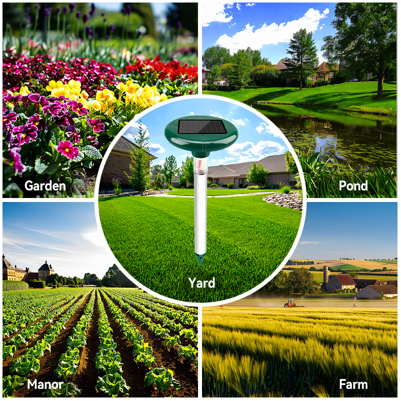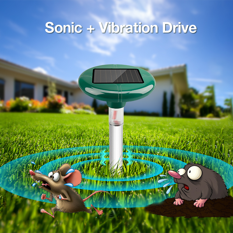 Alarmă sonică pentru alungarea cârtițelor și rozătoarelor de câmp, alimentată cu baterii solare si LED pentru iluminare pe timp de noapte . Pentru funcționare continuă și pe timp de noapte, aparatul include o baterie reîncărcabilă care se încarcă în timpul zilei. Tub din aluminiu cu rezistență înaltă și excelente proprietăți de propagare a sunetului. Sistem eficient de generare a sunetelor deranjante. Simplu de utilizat, nu necesită întreținere, doar îngropați aparatul în centrul suprafeței afectate.