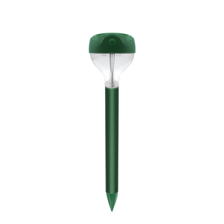 Aparatul sonic pentru alungat cârtițe și șerpi – Mole & Snake repeller (PS-115C) alimentat cu energie solară, combină lumina solară de grădină împreună cu alungarea cârtițelor și șerpilor. Emite vibrații ale undelor sonore pentru a simula pericolul și respinge dăunătorii. Dispozitivul radiază în toate direcțiile, undele sonore, evitand orice obstrucție. LED-urile albe, vă pot lumina grădina și o vor face mai frumoasă.